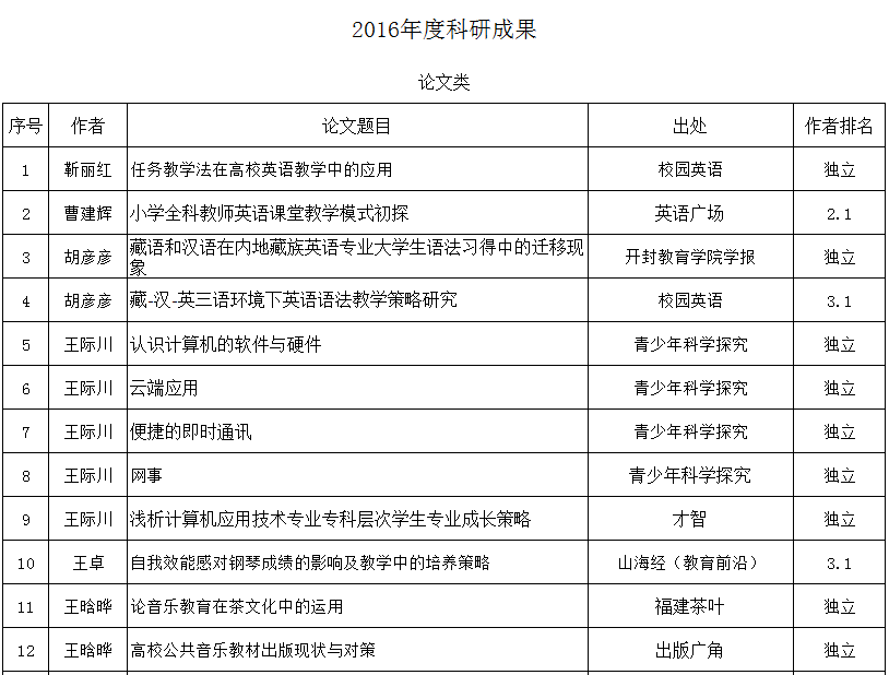 2016年科研成果
