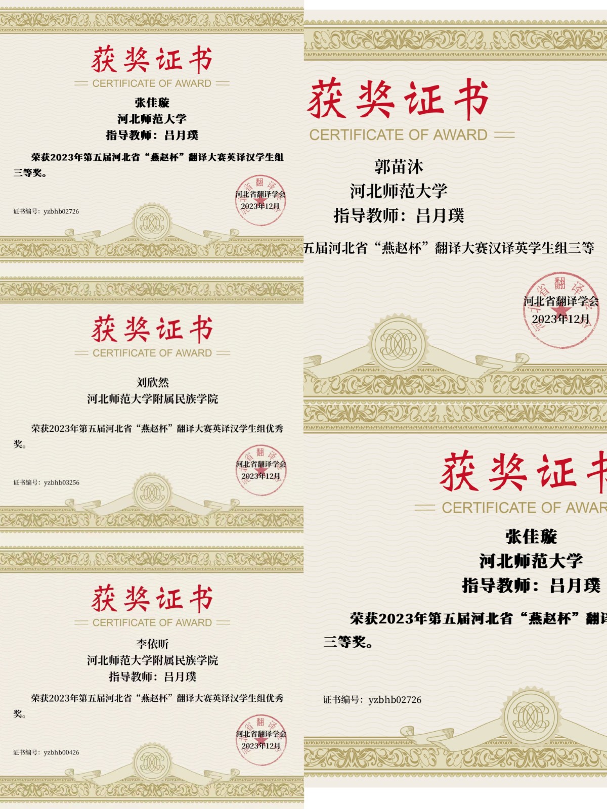 近日,第五届河北省“燕赵杯”翻译大赛圆满闭幕。比赛由河北省翻译学会主办,设有英译汉、汉译英,日译汉、汉译日,俄译汉、汉译俄,法译汉、汉译法,韩译汉、汉译韩组别比赛。经过激烈角逐,澳门十大电官网英语系学生最终斩获15个奖项,其中二等奖三名,三等奖四名,优秀奖六名,实现历史性突破。