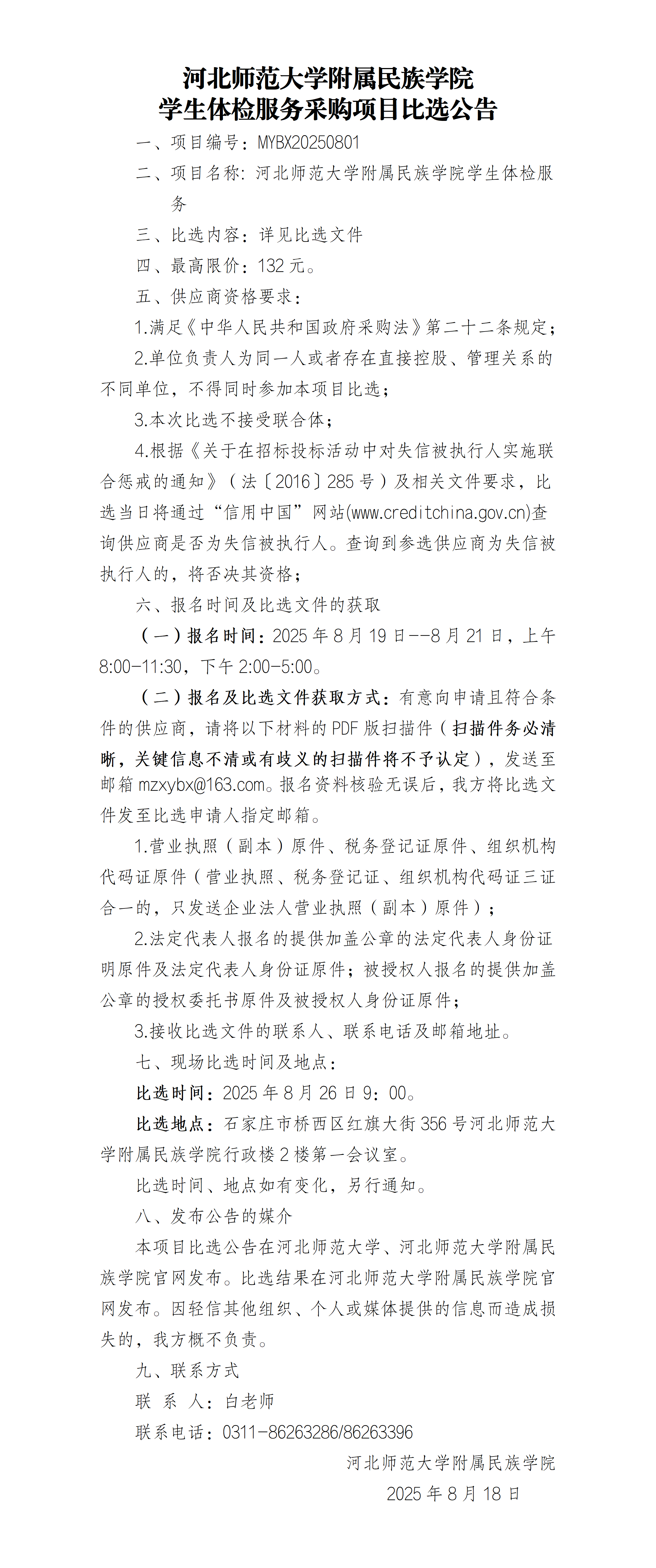 澳门十大电子正规游戏网站学生体检服务采购项目比选公告