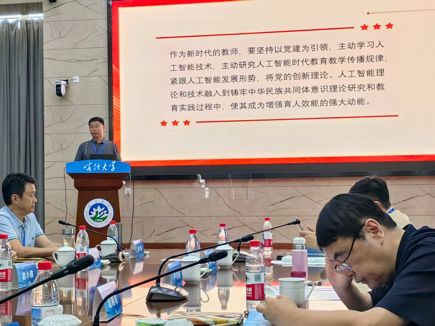白少双在论坛上作了题为《生成式人工智能赋能新时代铸牢中华民族共同体意识教育——党建引领下的价值校准与实践路径研究》的专题报告。报告从四个方面系统阐述了人工智能时代铸牢中华民族共同体意识教育的创新路径。在分析中,报告指出生成式AI带来的信息茧房、价值偏好和教育异化三重挑战,并据此提出技术治理三重路径及创新实践方案作为应对措施。报告强调通过党建领航实现思想校准和资源整合,借助AI技术实现精准推送、沉浸体验和效果评估,构建了“党建-AI融合”教育模型。报告特别提出要坚守师生面对面情感互动这一教育本源,将党建资源与人工智能技术协同应用,在校园文化建设和研学活动中实现价值引领与技术革新的有机统一。此外,白少双还系统介绍了学院的办学特色和在铸牢中华民族共同体意识教育方面的创新实践。