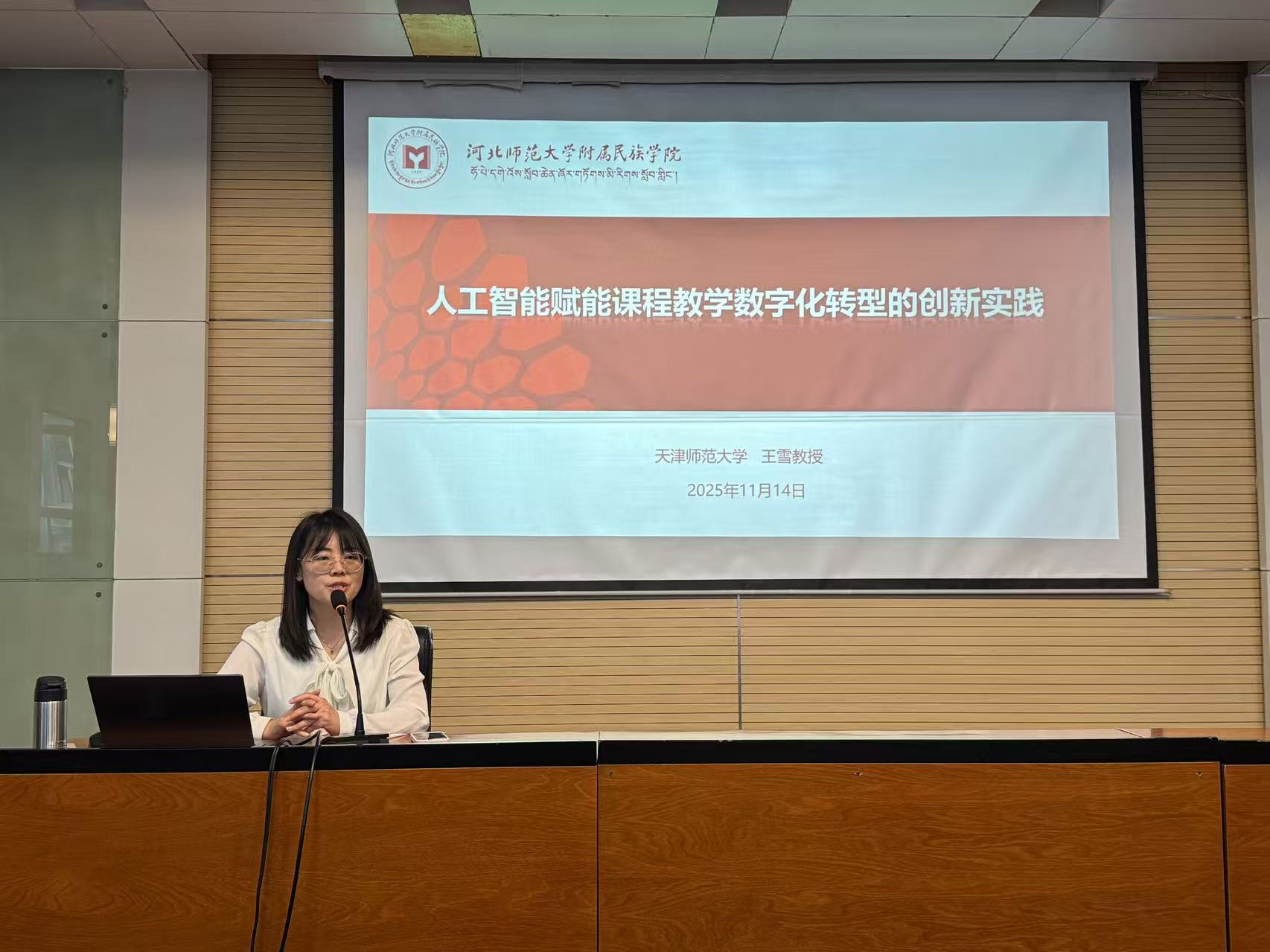 为进一步推动人工智能赋能教学转型,提升教师智慧教学能力,11月14日下午,澳门十大电官网特邀天津师范大学教育学部教育技术系主任、博士生导师王雪教授,作了题为《人工智能赋能课程教学数字化转型的创新实践》的专题讲座。讲座由副院长乔庆刚主持。全院70余名教师到场聆听。